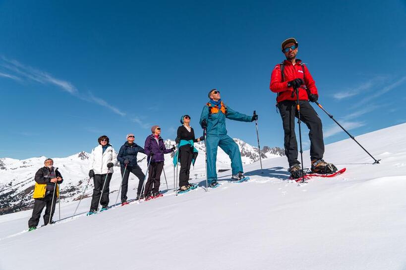 Partez à l'aventure en raquettes ou avec des skis de randonnées entre amis ou avec un guide ESF.